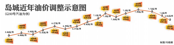 油價(jià)三度下調(diào)靴子如期落地,7月10日,國(guó)家發(fā)改委宣布,7月11日零時(shí)起下調(diào)國(guó)內(nèi)汽柴油零售價(jià),汽油降幅420元/噸,柴油降幅400元/噸,首創(chuàng)三連降,并且首次提前一天告知降價(jià)。10日晚 ,記者從島城兩大石油公司獲悉,青島93號(hào)汽油每升降了0.34元,低于上次的0.42元。雖然車主感受到了降價(jià)帶來(lái)的實(shí)惠,并且進(jìn)入了“6時(shí)代”,但是“沒有降到位”“降價(jià)打折扣”讓很多車主覺得不爽。同時(shí)很多市民質(zhì)疑:既然油價(jià)降了,燃油附加費(fèi)為何還不取消?