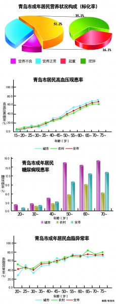 [提要] 全國八成家庭油鹽攝入量超標。島城慢性病形勢嚴峻  市疾控中心提供給記者的《青島市居民營養與健康狀況》中提到,島城“居民慢性病形勢嚴峻,青島市居民的高血壓、糖尿病和血脂異常的患病形勢嚴峻,農村形勢值得重視。