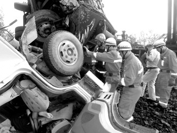 [提要] 消防與醫(yī)護(hù)人員進(jìn)行現(xiàn)場(chǎng)急救。13日早上5點(diǎn)30分左右,家住彭莊鋼材市場(chǎng)附近的小劉還迷迷糊糊沉浸在睡夢(mèng)中,突然,外面一聲巨響把他驚醒。事故發(fā)生的原因,路政人員表示不是很清楚,而拉煤貨車司機(jī)已被警方帶走,廂式貨車內(nèi)的人員被消防人員救出后立馬送到醫(yī)院搶救。