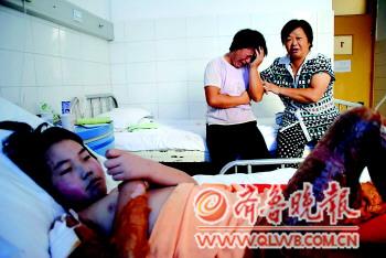 本報泰安7月18日訊(記者 趙興超) 肥城市安駕莊鎮東塢村村民陳燕在帶著8歲女兒理發的時候,電動車突然起火,造成女兒嚴重燒傷。17日,在肥城市中醫院外二科1號病房里,被燒傷的8歲女孩武同齡想起當天起火情景,仍眼淚汪汪。