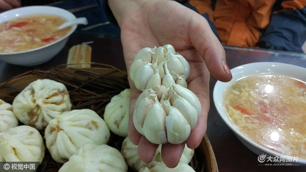 大蒜漲價(jià)太狠,餐飲店里顧客吃包子或者餃子不再有免費(fèi)的大蒜,一元錢一頭。圖片作者:視覺中國(guó)