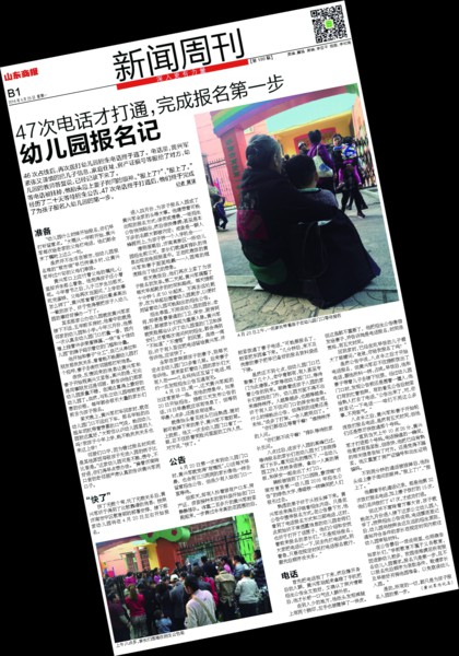 全職在家照顧孩子的妻子,則每天定點(diǎn)去幼兒園門口多看幾眼。后來妻子告訴他,原來緊盯著幼兒園的家長們大有人在——幾名媽媽還互留了電話,相約一旦發(fā)現(xiàn)招生公告互通有無。