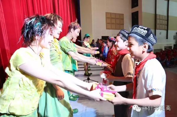 濟南兒童藝術團演員向喀什的孩子們贈送了小禮物