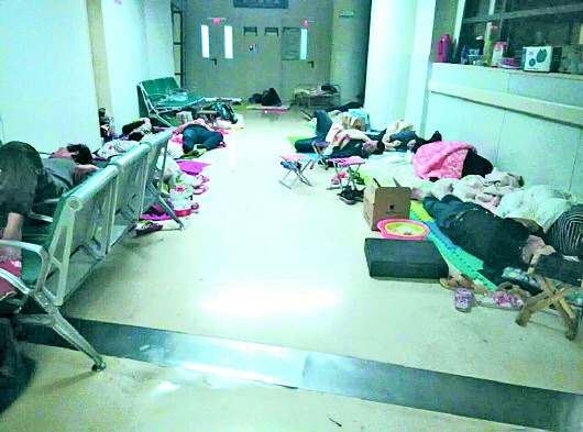 同樣沒睡著的還有旁邊的一對年輕夫妻,他們告訴記者,前幾天他們在醫院旁邊的一家賓館訂了個房間,無奈發現即便有這個經濟條件也沒法住得安心,ICU患者的陪人“必須隨叫隨到”,夜間在醫院和賓館之間來回跑幾次后,他們只好退掉房間,買了兩個躺椅,加入寄居醫院的大軍。