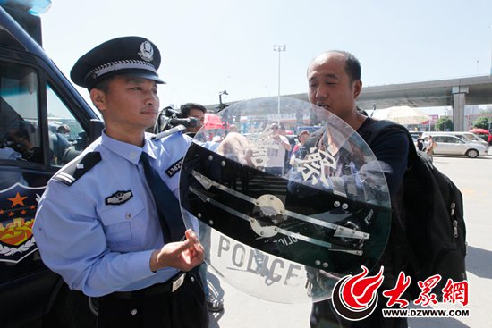 大眾網濟南5月17日訊(記者 樊思思 通訊員 李哲)5月17日上午,濟南天橋警方聯合多家單位舉行濟南長途汽車總站周邊單位聯勤聯動啟動儀式,通過制定濟南長途汽車總站周邊單位應急處突聯勤聯動工作機制,形成了“專群結合、聯動配合”的應急處突體系。活動中,民警還進行了步槍、盾牌、防化服等應急處突警用裝備的展示,引起市民的極大興趣。