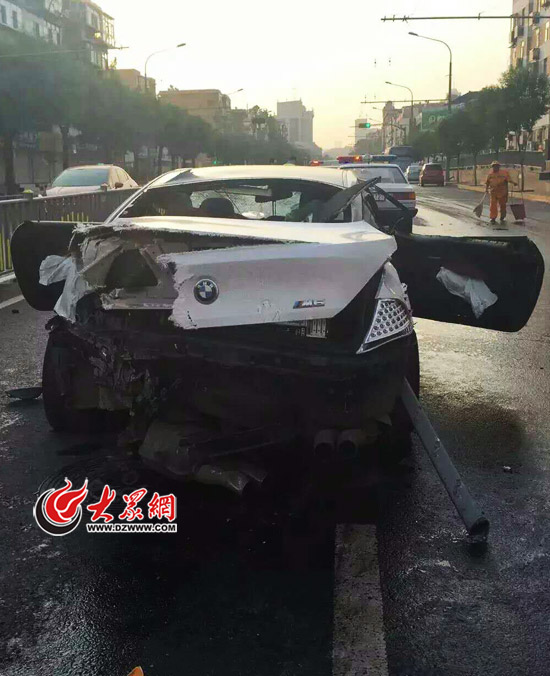 有現場目擊者稱,寶馬車未懸掛號牌,車內的臨時號牌也沒有貼在規定位置。被撞毀的護欄共有兩處,其中西側一段受損最嚴重,約有十多米的護欄被撞飛,現場地面是到處是碎片。