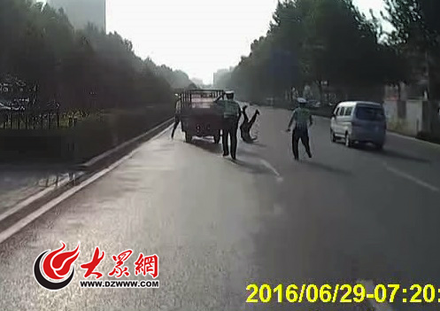 大眾網(wǎng)濟南6月29日訊(記者 賀輝)今天早晨,濟南二環(huán)西路上一輛快遞三輪遇到交警試圖闖卡逃逸,連續(xù)撞傷兩名交警后被控制。肇事的圓通快遞員韓某今年24歲,目前已被移交派出所處理。