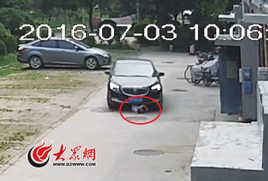 僅僅3天后的7月3日,悲劇再次發生在槐蔭區美里新居院內。小區內的監控畫面顯示,上午10點左右王某海開車準備帶全家出門游玩,轎車起步右轉后沿樓前水泥路行駛,就在車正前方10米左右的蹲著一個5歲男孩。然而,轎車卻不可思議的徑直朝著男孩撞了過去。