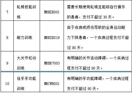 本次納入的20項醫(yī)療康復項目包括:康復綜合評定、吞咽功能障礙檢查、手功能評定、平衡試驗、平衡訓練、表面肌電圖檢查、輪椅技能訓練、耐力訓練、大關(guān)節(jié)松動訓練、徒手手功能訓練、截肢肢體綜合訓練、小兒行為聽力測試、孤獨癥診斷訪談量表(ADI)測評、日常生活動作訓練、職業(yè)功能訓練、精神障礙作業(yè)療法訓練、減重支持系統(tǒng)訓練、電動起立床訓練、兒童聽力障礙語言訓練、言語能力篩查等。