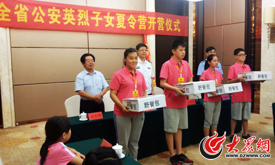 開營式上,16名公安英烈子女獲贈助學金和夏令營野餐包,省公安廳希望通過夏令營活動幫助英烈子女開拓視野、舒緩身心,激勵他們的學習生活斗志,健康快樂的成長。這是山東省公安廳舉辦的第7屆夏令營,2010年以來先后已有300公安英烈子女參加過此類夏令營。