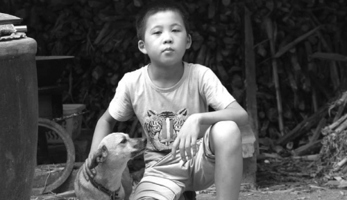 “出去干活掙一千五,人家給他一千他也接著。”鄰居說。李秋運家的院子中有個簡易廚房,父親出去的時候,李秋運有時候會讓對門的爺爺幫著把火生上,自己煮大米稀飯,更多的時候自己糊弄著吃一頓。廚房里有碼得整整齊齊的木材,鄰居說李付營回到家就去撿柴火,劈木柴。院子里養的兩只狗是李秋運的玩伴。“我吃什么就喂它們什么。”李秋運說。