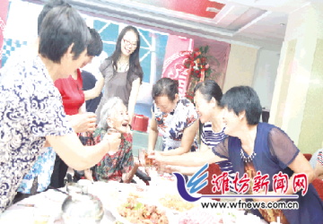 子孫們給裴金芝老人敬酒祝壽。濰坊新聞網8月15日訊 8月14日,濰城區的裴金芝老人迎來了她的百歲生日,分散在全國各地的百余名子孫前來給老人賀壽。上午11時許,100多個子孫按照輩分給裴金芝老人磕頭祝壽,老人看到子孫一一給她磕頭,一會兒激動地哭一會兒高興地笑,...[詳細]