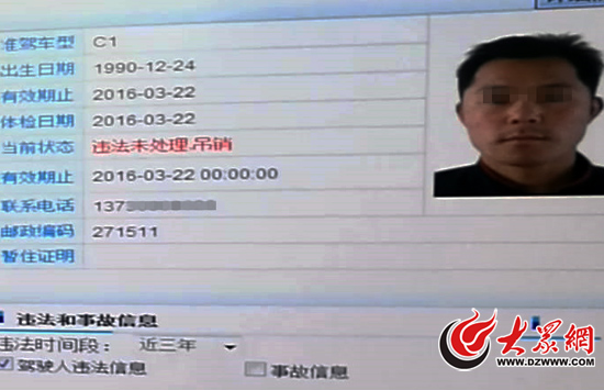 濟(jì)南歷城交警查詢發(fā)現(xiàn),馬某龍?jiān)隈{駛證處于吊銷狀態(tài)