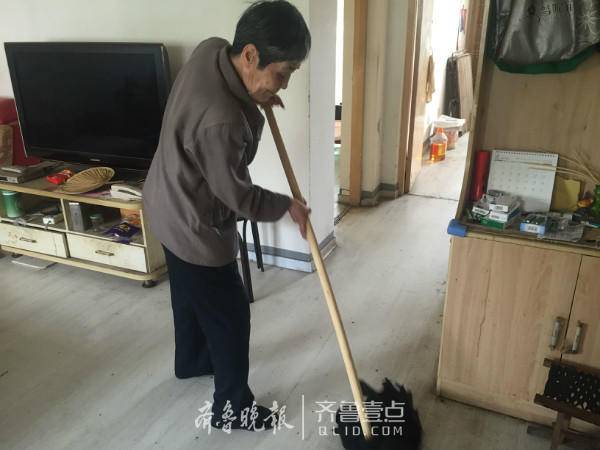 在濟南高新區盛福花園,71歲的王玉英在家,反復擦著地。有一點臟東西,也要立馬擦干凈,她覺得,這樣可以打發時間。