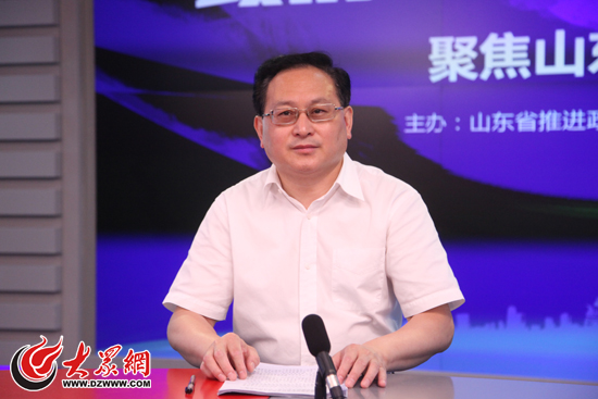 山東省工商局黨組書記、局長(zhǎng)楊宜新做客大眾網(wǎng)演播室。(亓翔 攝)