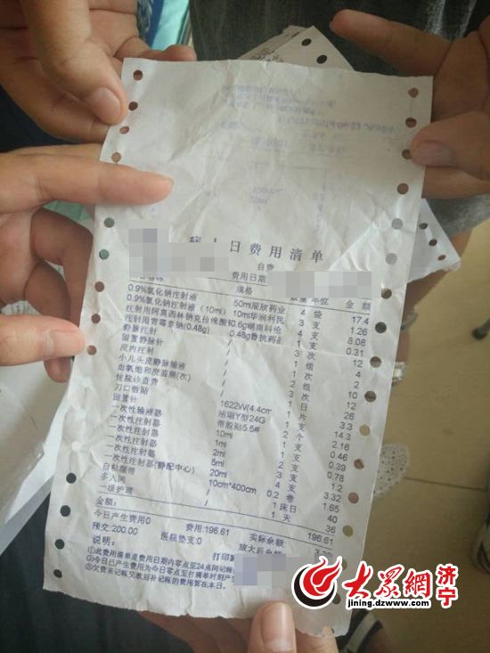 大眾網(wǎng)濟(jì)寧8月29日訊 25日上午,肖女士撥打濟(jì)寧大眾網(wǎng)新聞熱線(0537-2372789)反映,21日她15個(gè)月大的孩子張明明(化名)發(fā)燒住進(jìn)濟(jì)寧醫(yī)學(xué)院附屬醫(yī)院(簡稱:濟(jì)醫(yī)附院)兒科病房,當(dāng)天在沒有醫(yī)囑的情況下,被護(hù)士弄混了名字做了腦電圖,家屬希望兒科醫(yī)生就此道歉解釋卻遭到拒絕,還被兒科主任醫(yī)師搶走了手機(jī)。23日晚,值班護(hù)士給孩子輸液,輸液完成后,家屬竟發(fā)現(xiàn)針頭脫針,一袋消炎藥全流在了被褥床單上。家屬要求換被子,護(hù)士卻說太晚了得等明天。
