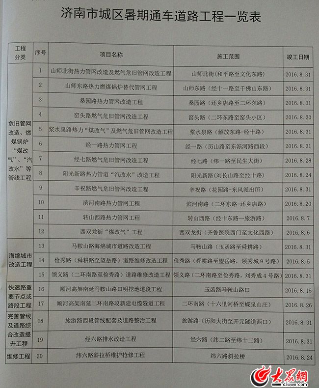 8月30日、31日兩天,濟南中小學開學報到,為盡量減少對孩子上放學路上的交通影響,濟南有20條路集中在暑假期間開工,開學前竣工通車。比如儉秀路、西雙龍街、轉山西路已于8月上旬通車,8月中下旬已經通車的還有玉函路馬鞍山路口、窯頭路、濱河南路、緯六路斜拉橋、陽光新路、二環南路、經七路。