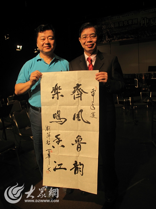柳華明秘書長、陸秋偉主任向全體演奏員表示了熱情慰問,柳華明秘書長說:“通過港魯寧音樂周的活動,架起了山東與香港交流的橋梁,促進了山東民間文化與香港都市文化的溝通、增進彼此的信任與理解,香港之行不僅是樂團鳴絲竹、展技藝的藝術之旅,更是樂團交朋友、開視野的文化之旅!