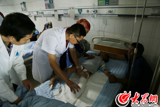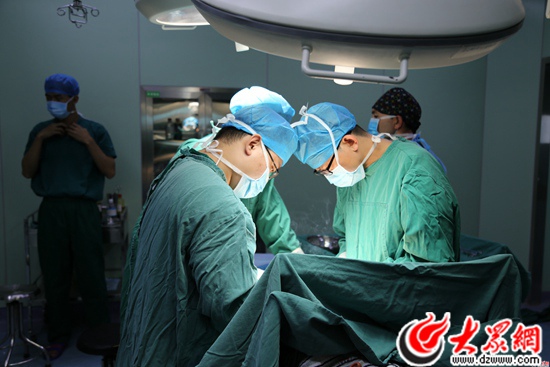 當(dāng)?shù)蒯t(yī)院醫(yī)護(hù)人員與山東醫(yī)療專家一起進(jìn)行手術(shù)。