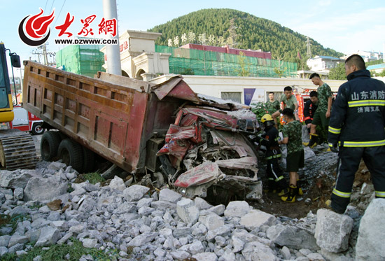 事發(fā)后交警趕到現(xiàn)場(chǎng),發(fā)現(xiàn)被撞的叉車、轎車、小貨車不同程度受損,而大貨車的駕駛室則被滾落的石塊徹底壓扁,石塊大小不一,最大的直徑超過(guò)轎車車輪。早晨7:40左右,消防人員通過(guò)破拆將駕駛員從駕駛室內(nèi)拉出來(lái)時(shí),發(fā)現(xiàn)他早就沒了生命體征。(大眾網(wǎng)-山東24小時(shí)記者 賀輝)