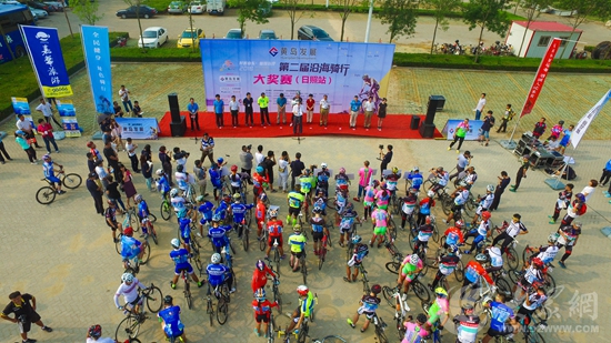 “黃島發展杯”山東省第二屆沿海騎行大獎賽在日照開賽。(攝影/韓春義)