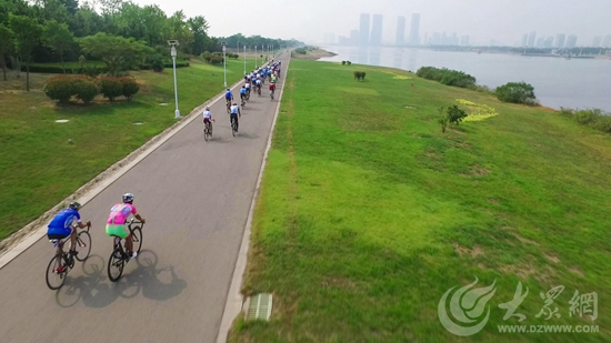在日照奧林匹克水上公園,運動員們在享受騎行快樂的同時也欣賞到了日照美麗的自然風光。(攝影/畢勝)