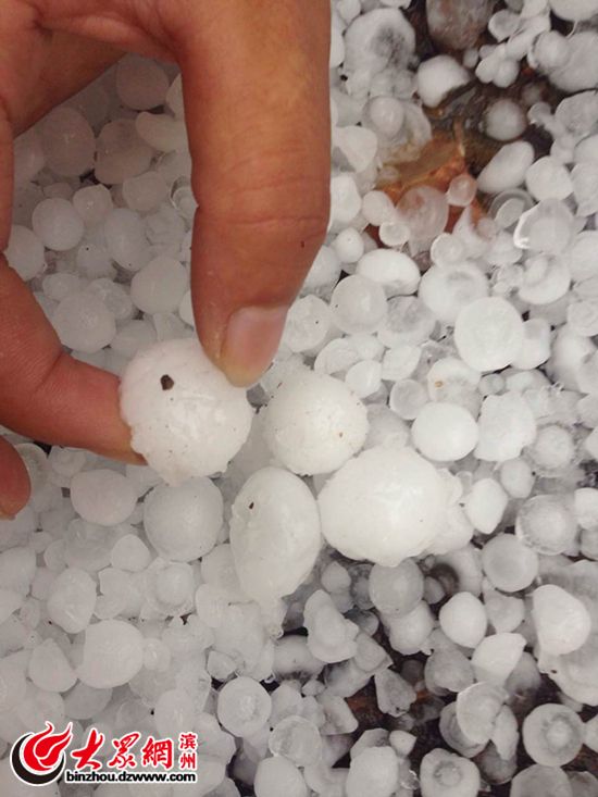 9月11日下午4點(diǎn)左右,濱州陽信突然下了一陣奇怪的冰雹,奇怪之處在于冰雹降落區(qū)域主要在縣城及以西的城鄉(xiāng)結(jié)合部,而該區(qū)域正好是陽信梨樹的主產(chǎn)區(qū),其他區(qū)域受影響不是很大。