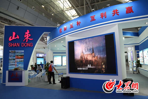 在山東展館區,以藍色和白色為主色調搭建起來的展臺顯得格外耀眼。