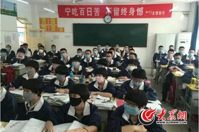 今年4月,歷城二中學生集體戴口罩上課。資料圖