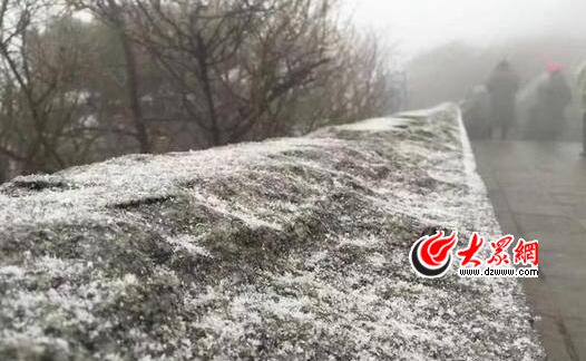 大眾網濟南10月31日訊 隨著全省大降溫的到來,山東迎來了今年的初雪。今天早晨5點多,泰山南天門降下了入冬前的第一場雪,不過小雪只持續了一個多小時。