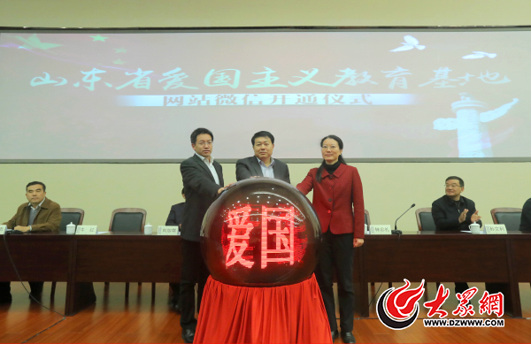 山東省委宣傳部副部長劉致福、山東省互聯(lián)網(wǎng)傳媒集團總經(jīng)理林忠禮、山東省財政廳教科文處副處長牛紅共同按動水晶球,開通山東省愛國主義教育基地網(wǎng)站和微信。 大眾網(wǎng)記者 王長坤 攝