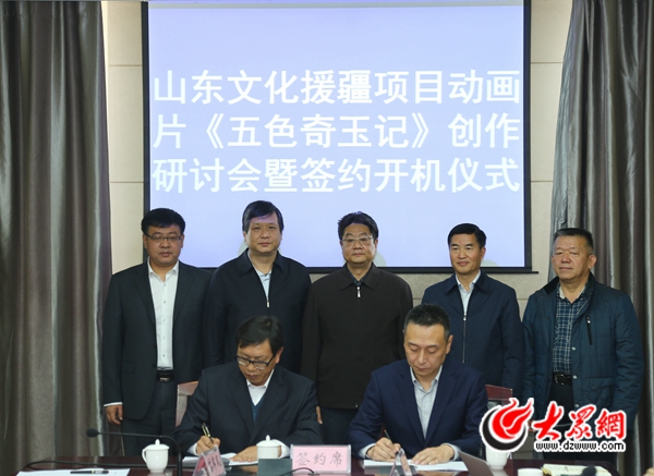 大眾網(wǎng)喀什11月3日訊(記者 魏鵬)3日上午,由山東省援疆指揮部、山東廣播電視臺(tái)、喀什地委宣傳部聯(lián)合實(shí)施的山東文化援疆重點(diǎn)項(xiàng)目維漢兒童動(dòng)畫片《五色奇玉記》創(chuàng)作研討會(huì)暨簽約開機(jī)儀式在喀什舉行。動(dòng)畫片預(yù)計(jì)2017年底制作完成。