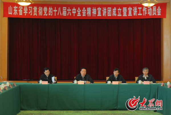 11月9日,山東省學習貫徹黨的十八屆六中全會精神宣講團成立暨宣講工作動員會在濟南舉行。