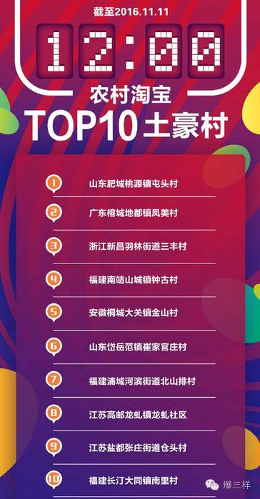 爆三樣(ID:sdbaosanyang)的樣哥發(fā)現(xiàn),除了屯頭村,今年中午闖入農(nóng)村淘寶消費榜前十的還有山東的另外一個村,它同樣來自泰安?戳讼旅孢@個榜單,也許你會問,今天泰安的農(nóng)民剁手黨們都買的啥?他們哪兒來這么多錢?他們下單能搶得過城里人嗎?樣哥為你一探究竟。