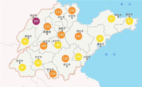 城市空氣質量方面,目前德州是重度污染,濟南、淄博、濱州、東營、濰坊、棗莊、臨沂是輕度污染,其他地區是良。