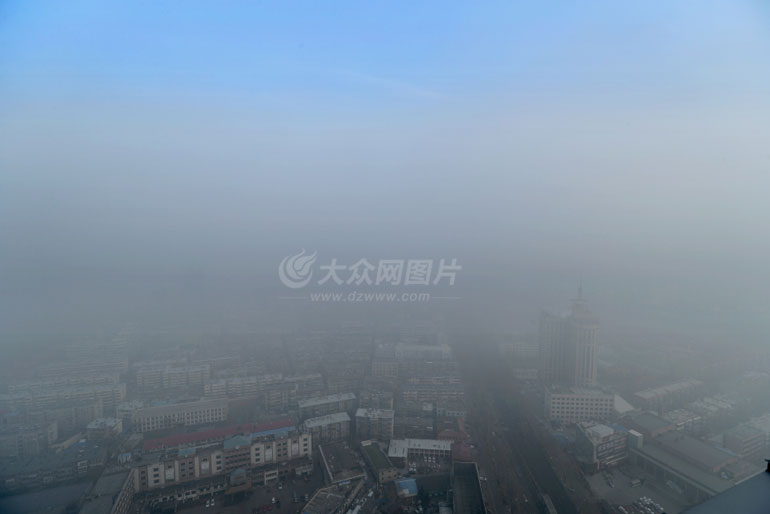 1月6日,山東省氣象臺(tái)繼續(xù)發(fā)布大霧黃色預(yù)警信號(hào)和霾橙色預(yù)警信號(hào)。大眾網(wǎng)記者在150米高空拍攝下的濟(jì)南城區(qū),整座城市灰蒙蒙一片,霧霾和藍(lán)天相隔一線。大眾網(wǎng)記者 王長(zhǎng)坤 攝