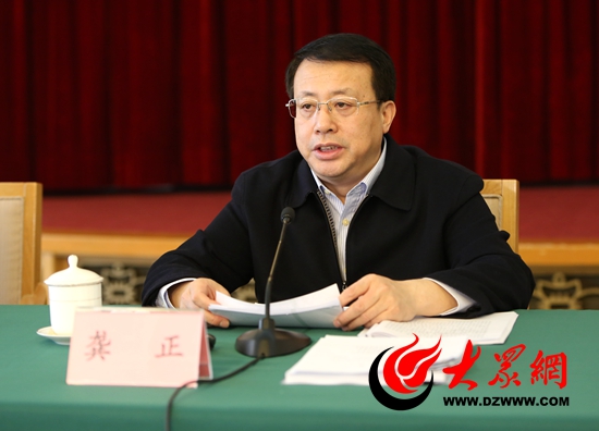 山東省委副書記、省扶貧開發(fā)領導小組副組長龔正出席會議并講話(記者 王宗陽攝)