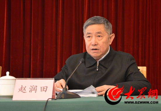 山東副省長、省扶貧開發(fā)領導小組副組長趙潤田主持會議。(記者 王宗陽攝)