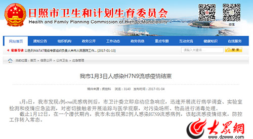 日照市衛計委通報該市H7N9流感疫情結束。