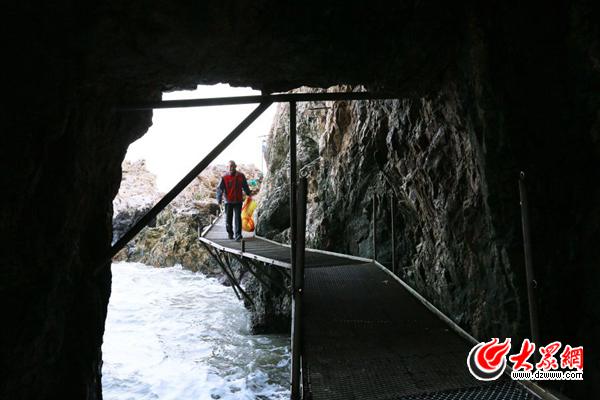 大眾網(wǎng)記者來到之前,劉文龍已經(jīng)圍著島礁觀光帶巡走了一圈。游客多的時候,他一天要巡走8圈,到了冬季,一天走一圈便夠了。
