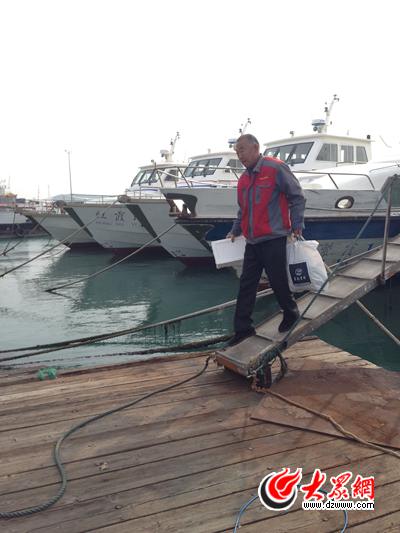 船上,除了船員、大眾網(wǎng)記者,還有一部衛(wèi)星電視接收器和隨行前去島上進行安裝的施工人員。這部接收器,便是海驢島景區(qū)送給守島人劉文龍的春節(jié)禮物。