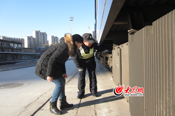 在濟(jì)南鐵路局濟(jì)南站客整場,民警宋洪嶺與隊友一起巡查列車安全。