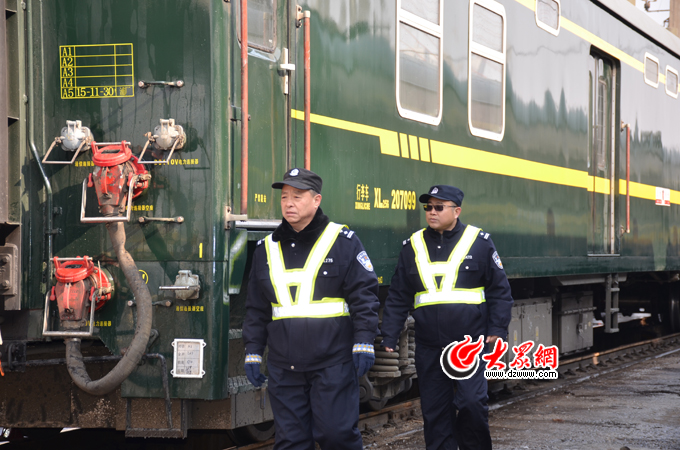 在與宋洪嶺的攀談中,大眾網(wǎng)記者了解到,濟(jì)貨承擔(dān)著京滬既有線4.048公里、濟(jì)滬高鐵聯(lián)絡(luò)線3.8公里,以及新場編組場、濟(jì)南地區(qū)車場和濟(jì)南客整場的安全保衛(wèi)任務(wù),有200余輛普通列車從這里始發(fā)。