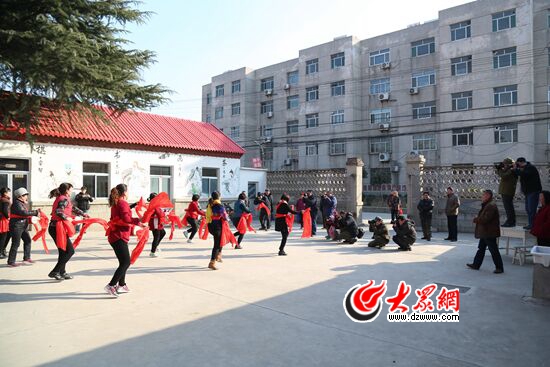 正式造訪金莊村已經是下午一點半了,接待我們的是金莊村的村長金樹楨,在他的帶領下我們到達了本次活動的主要地點——金莊村文體活動中心。據金村長介紹,全村現有475戶共計約1500人口,同樣存在青壯年外出務工的原因,所以村里現在以婦孺為主。我們擔心這里的年味氛圍不夠濃厚,本以為可能和之前的村一樣,然而當我們到達文體活動中心時,展現的卻是另外一幅場面:干凈整潔的水泥路面上正站著整齊的4排隊伍練習舞蹈,配上最后排兩個大音響的伴奏,現場顯得熱鬧非凡。看到攝影師們一行人的到來,村民們反而更加充滿激情,跳舞的步伐似乎變得輕快了許多。跟隨金村長的步伐拍客們來到了活動中心的音樂教室,這里不僅有二胡、鋼琴等古典樂器,還有電子琴、電吉他等現代流行樂器,為方便年輕一代音樂愛好者練習、表演。隔壁的房間擺放著投影儀和大屏幕,為方便青年男女觀看教育影片、學習舞蹈動作。在文化中心甚至還有小型圖書室,里面陳列著音樂、書法、生活百科等各類書籍。拍客們感嘆這里文化韻味之濃厚,紛紛拿起相機記錄下這些珍貴的時刻。