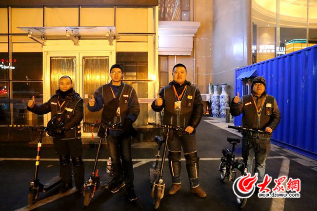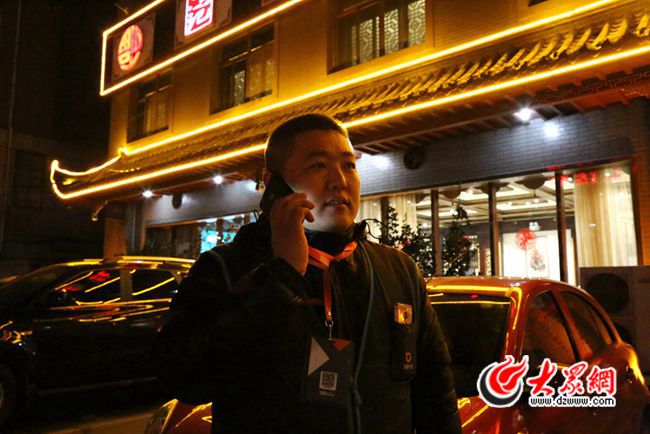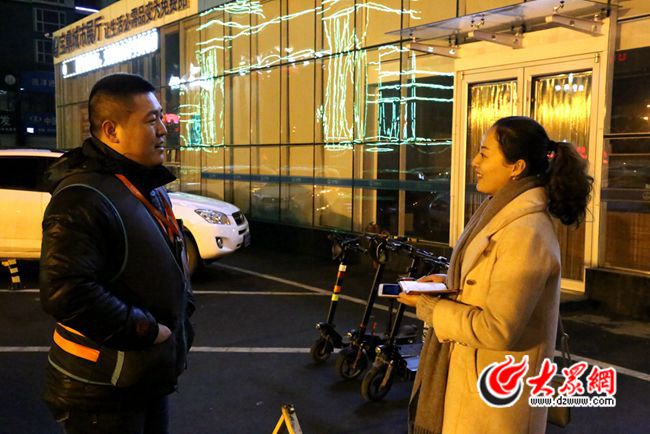 1月29日晚上7點,大眾網記者來到了淄博海悅大酒店,夜幕降臨,酒店門口一群推著小車,身穿代駕馬甲的司機們正在聊著天。
