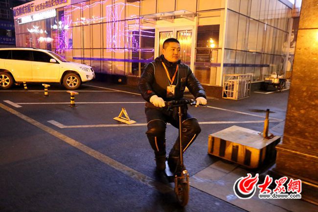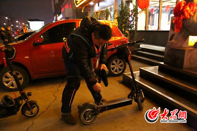 在等待客人的空隙,大眾網記者試騎了一下李新的小電動車,車子約四五十斤重,比起普通電動車,折疊后可以放在車的后備箱中。“馬甲和小電動車是代駕的標配,在路邊走著,很多人看到就知道我們是代駕,會招呼我們。”李新告訴記者。