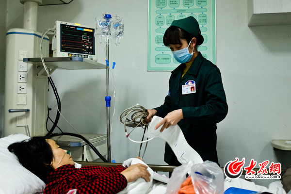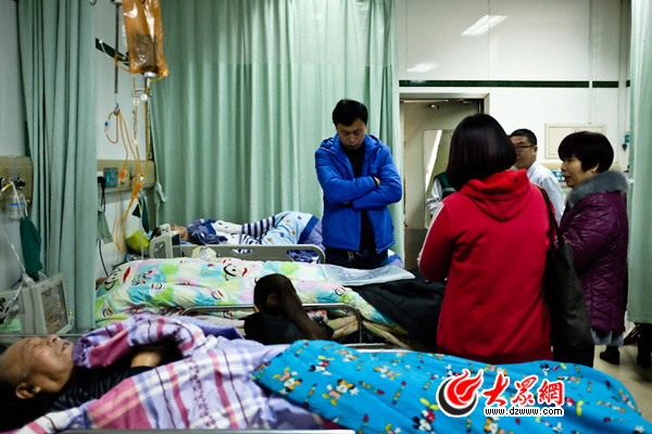 匆匆吃過早飯,大眾網記者便直奔淄博市中心醫院。一踏進急診科,門外濃濃的“年味兒”就蕩然無存了——在患者身邊陪護的家人個個愁眉緊鎖,一臺臺心電監護設備工作著,急診科的“綠衣人”們忙著照顧患者,幾乎無暇與記者交流,往往一個話題剛開頭,就急匆匆走開了……記者拿過記錄表一看,在過去24個小時內,這里共收治了四五十名患者,其中很多危重患者。