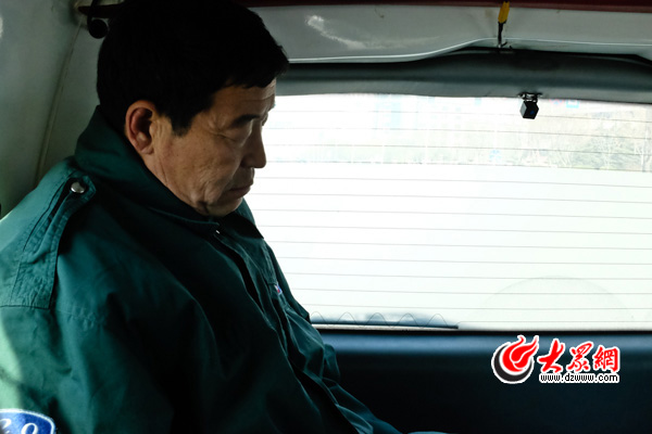 在救護車返程路上,56歲的擔架工任師傅坐著打起了盹兒。