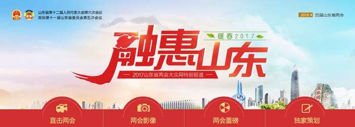 2月5日、6日,山東省政協十一屆五次會議、山東省十二屆人大六次會議將相繼在濟南開幕。4日起,大眾網全平臺開啟“融惠山東——暖春2017山東省兩會特別報道”(http://www.gaoxiaozai.com/2017/sdlh/),通過大眾網、山東24小時新聞客戶端、山東手機報、大眾論壇、官方微博、微信實時播報來自兩會的熱點內容,并進行全平臺互動。直播、小程序、VR、H5……前方報道團隊將通過各種新應用讓您打開手機就如同來到了兩會現場,隨時與代表、委員“面對面”。