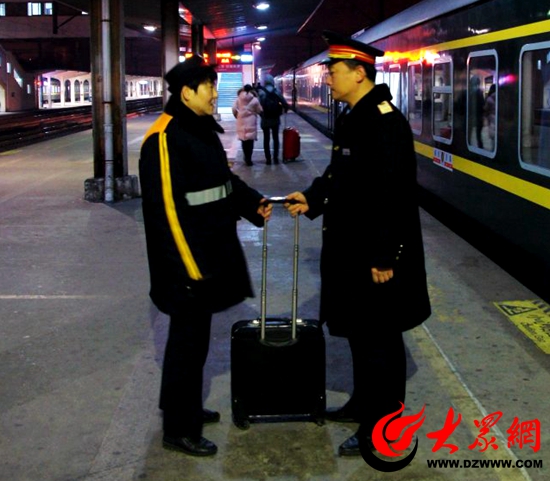 春運(yùn)十分忙碌,兩人揮一揮手,轉(zhuǎn)身又趕赴各自的工作崗位。